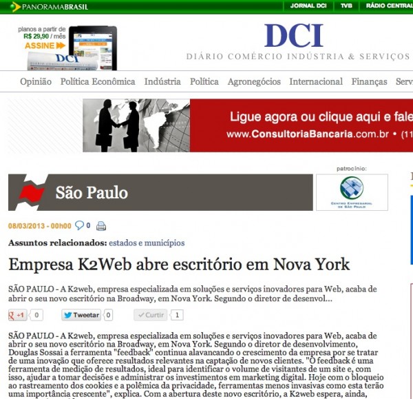 DCI publica matéria sobre a expansão da K2web nos EUA