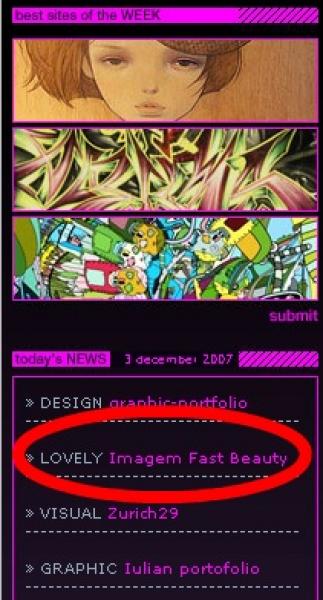 O site de nosso cliente Imagem Fast Beauty ganhou no dia 03/12, destaque no site de design www.gouw.nu, da Holanda. O site avalia milhares de sites da web e confere destaque aos melhores da semana.