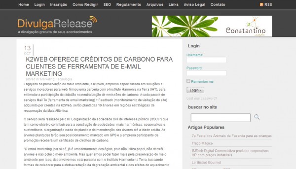 K2Web oferece créditos de carbono para clientes de ferramenta de e-mail marketing